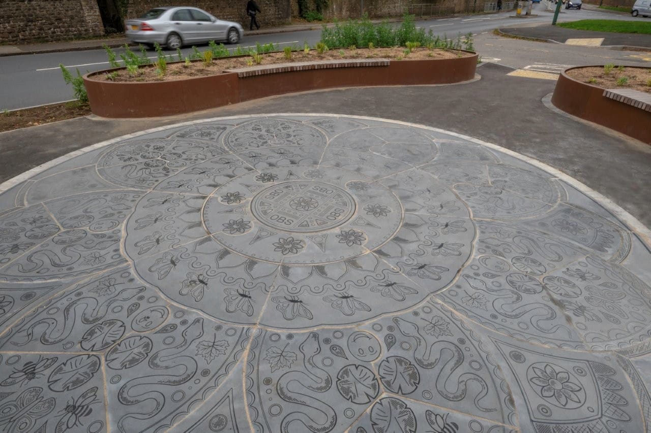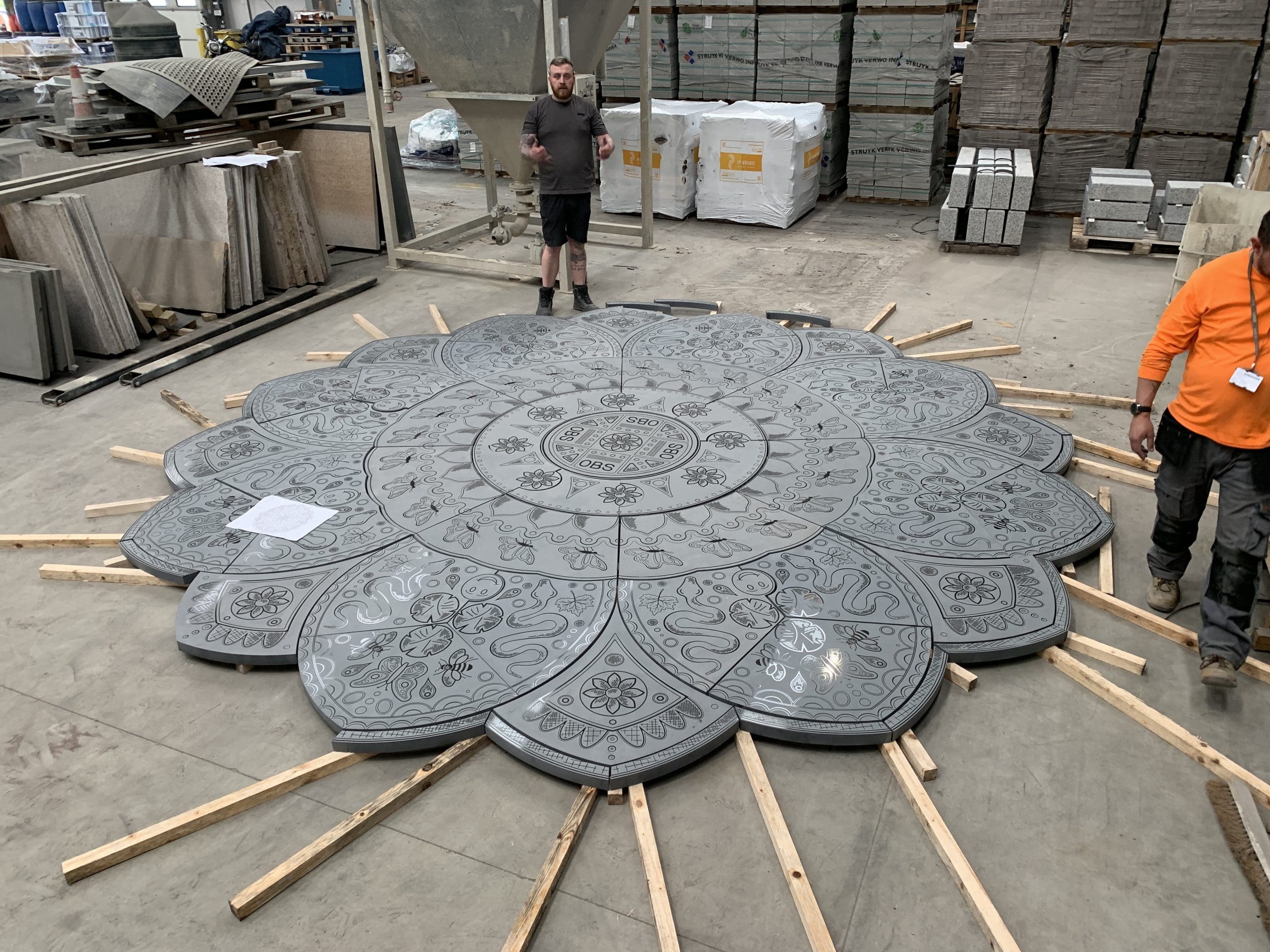 Hardscape Surfaces was commissioned to manufacture the floral mural, translating the intricate vision into durable, high-quality granite sections, collaborating with Leonard Design Architects and Nottingham City Council to bring it to life.